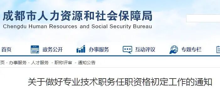 成都市人力资源和社会保障局于近期发布关于做好专业技术职务任职资格初定工作的通知,以下是具体信息。